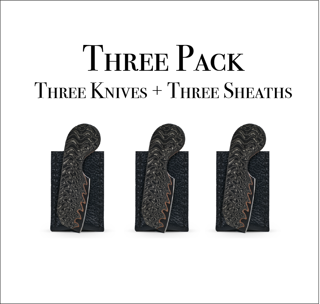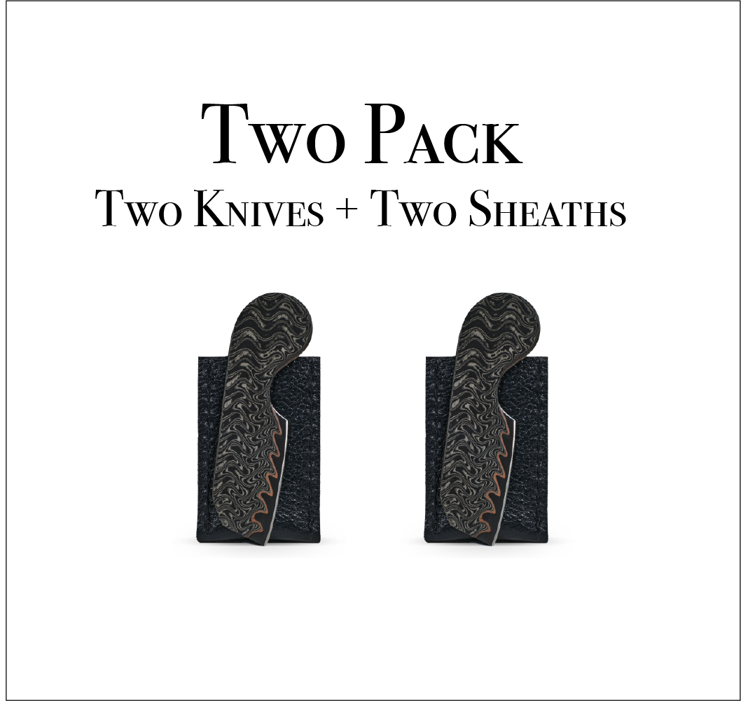 Gomai Steel – A layered steel construction inspired by traditional Japanese blade-making. Featuring a hardened core wrapped in softer outer layers, the Gomai variant offers excellent edge performance with added toughness and a subtle layered character. This option is perfect for those who appreciate craftsmanship and elevated materials in their everyday carry.